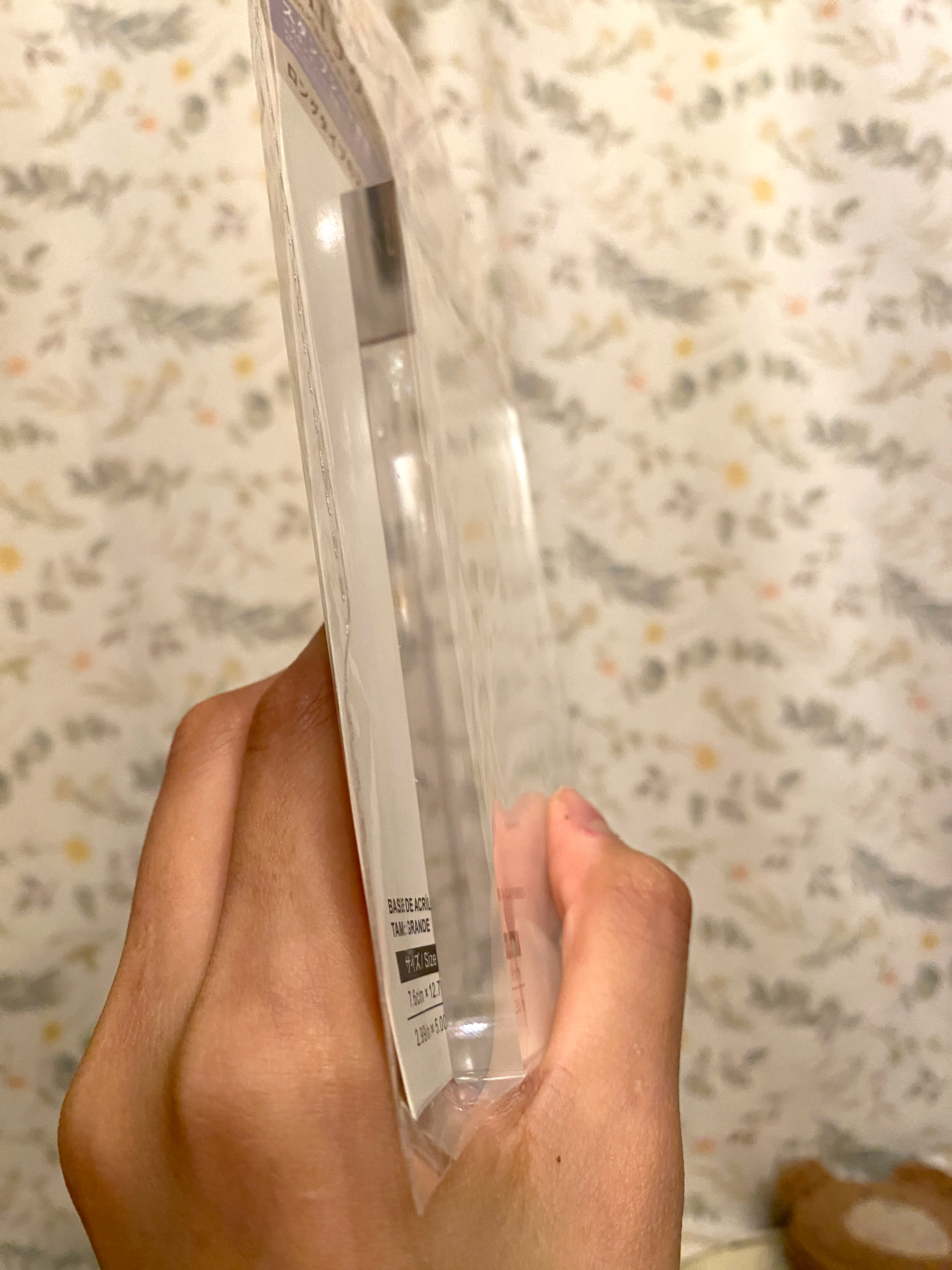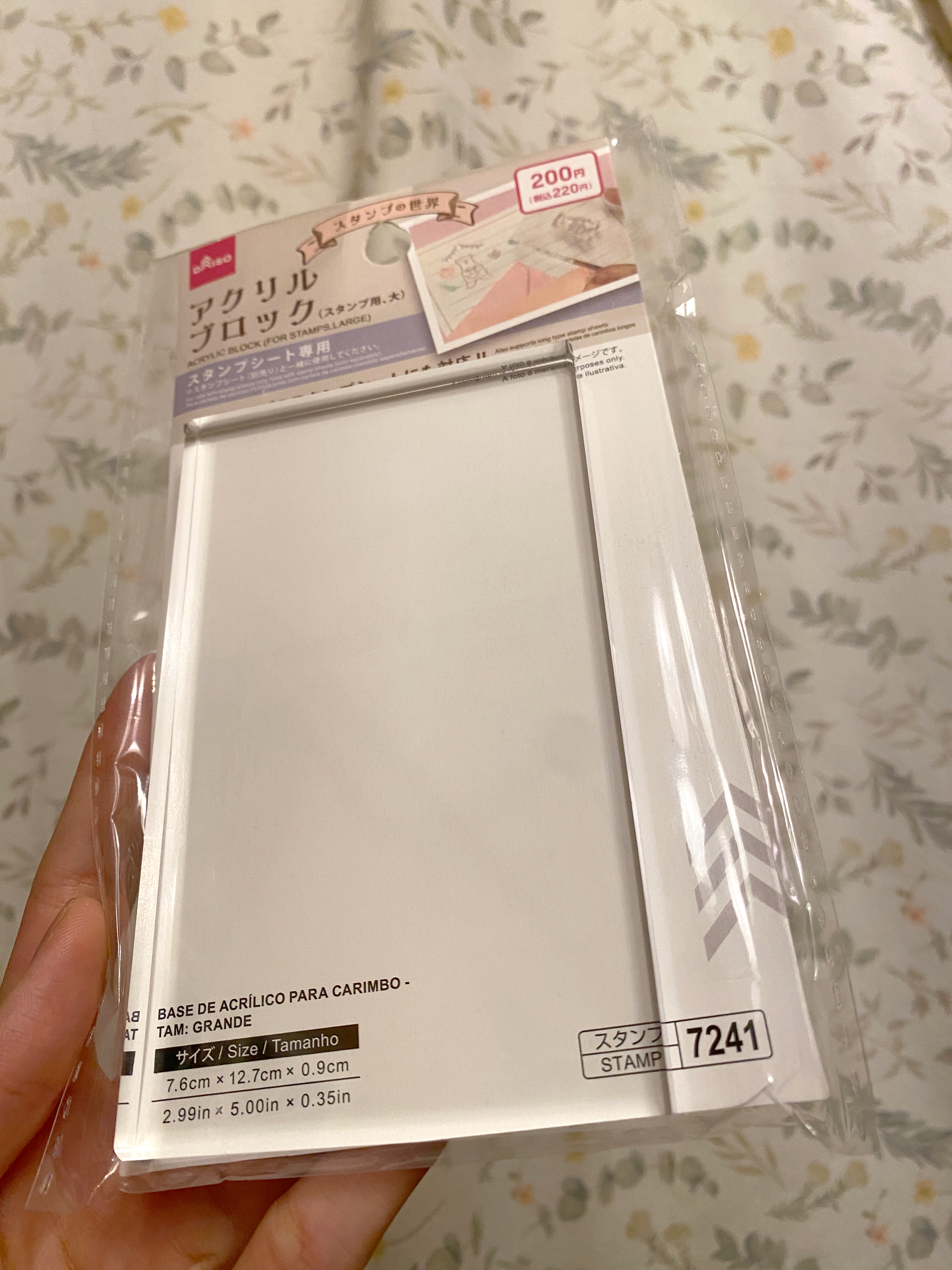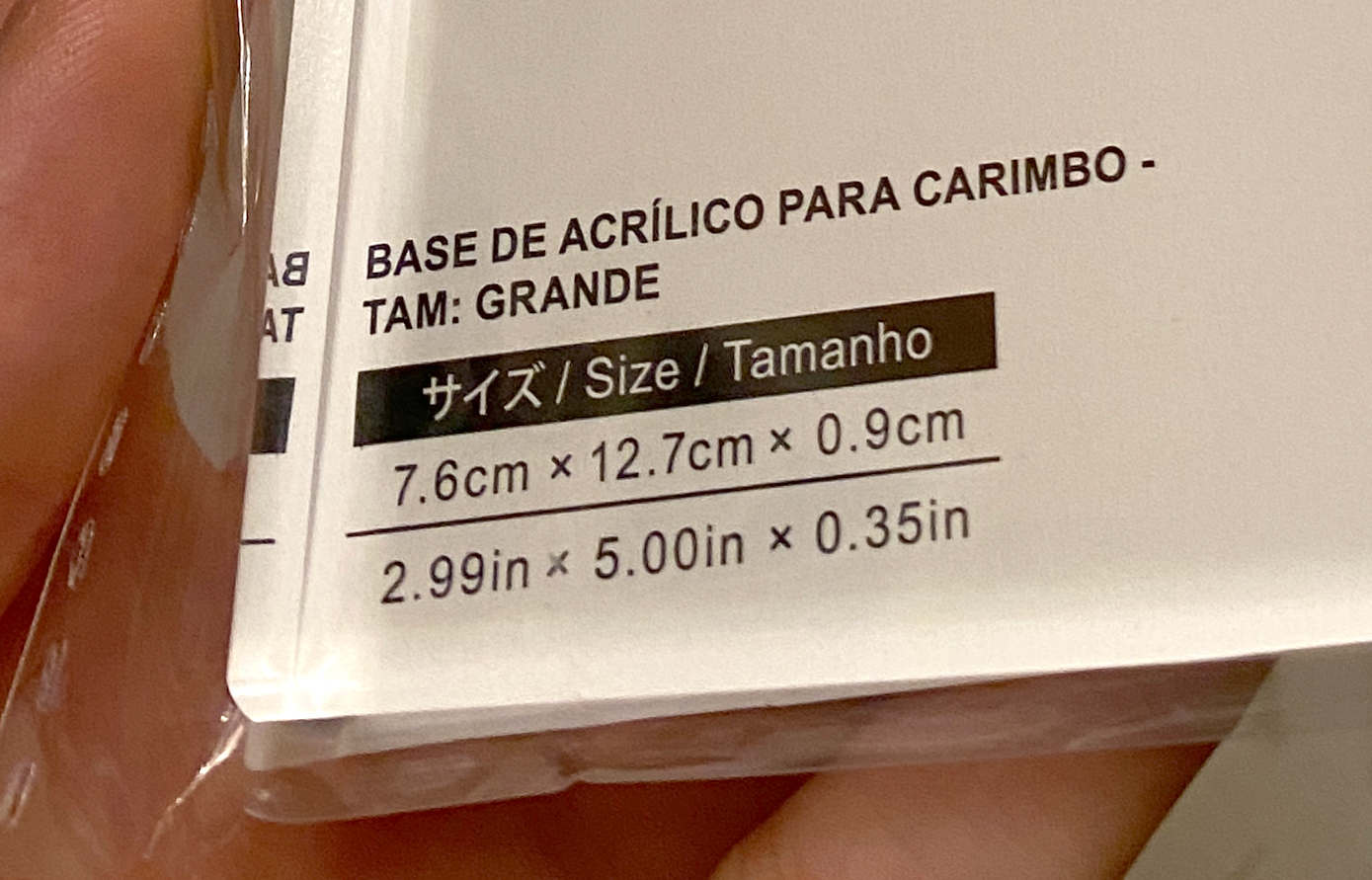 ダイソー様のスタンプ用アクリルブロックは、スタンプ用だからなのか厚みがすごい。200円〜。