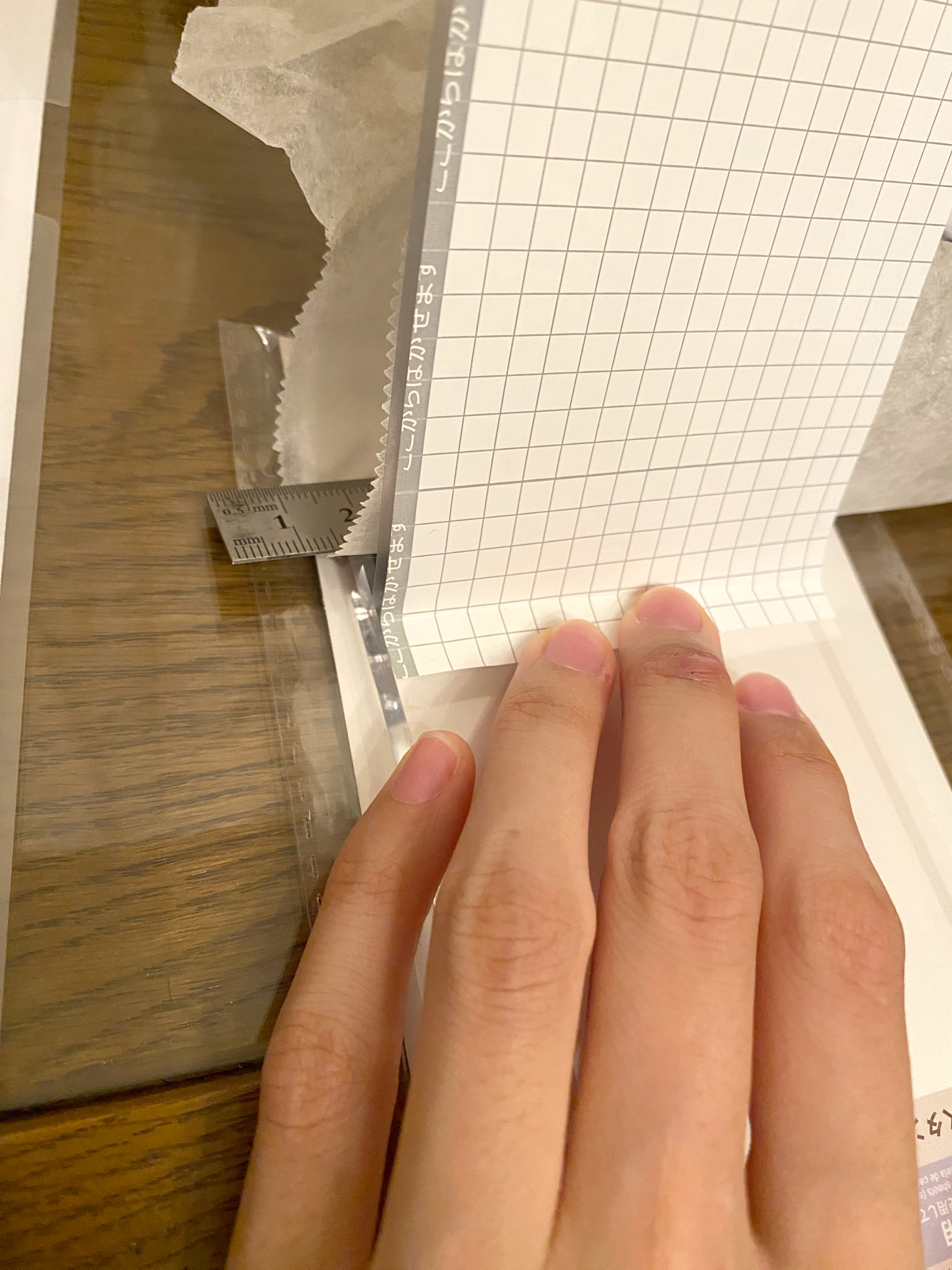 この時意識しすぎて、シールのインク部分へ直に金尺を当ててしまうと、擦れてインクが取れてしまうという事故もあるので力の程度にはお気をつけて…(経験者は語る)