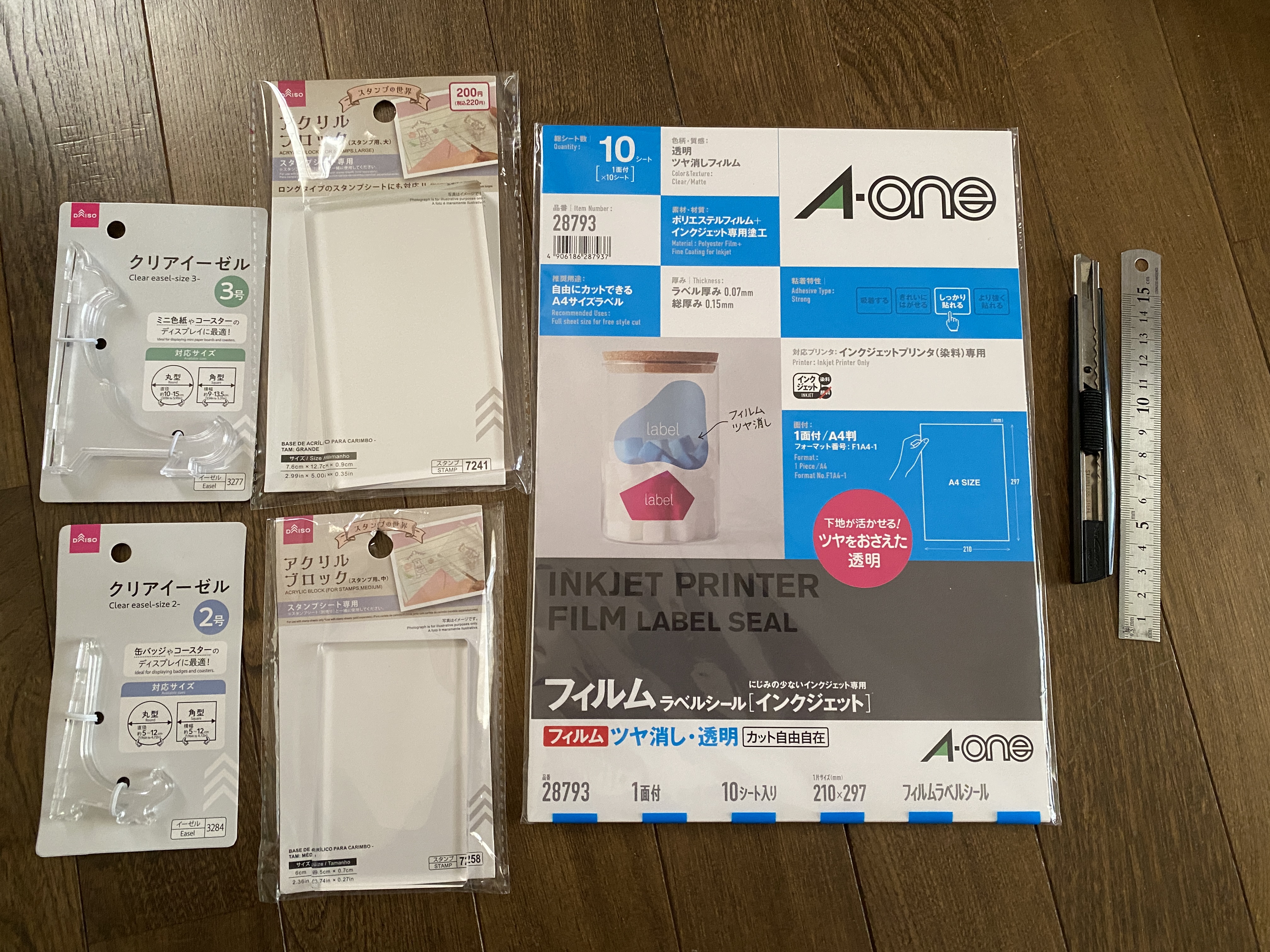 ちなみにダイソー様で購入したもので、アクリルブロックは大・中・小と3種類、イーゼルも6種類ほどサイズ展開されておりました。
