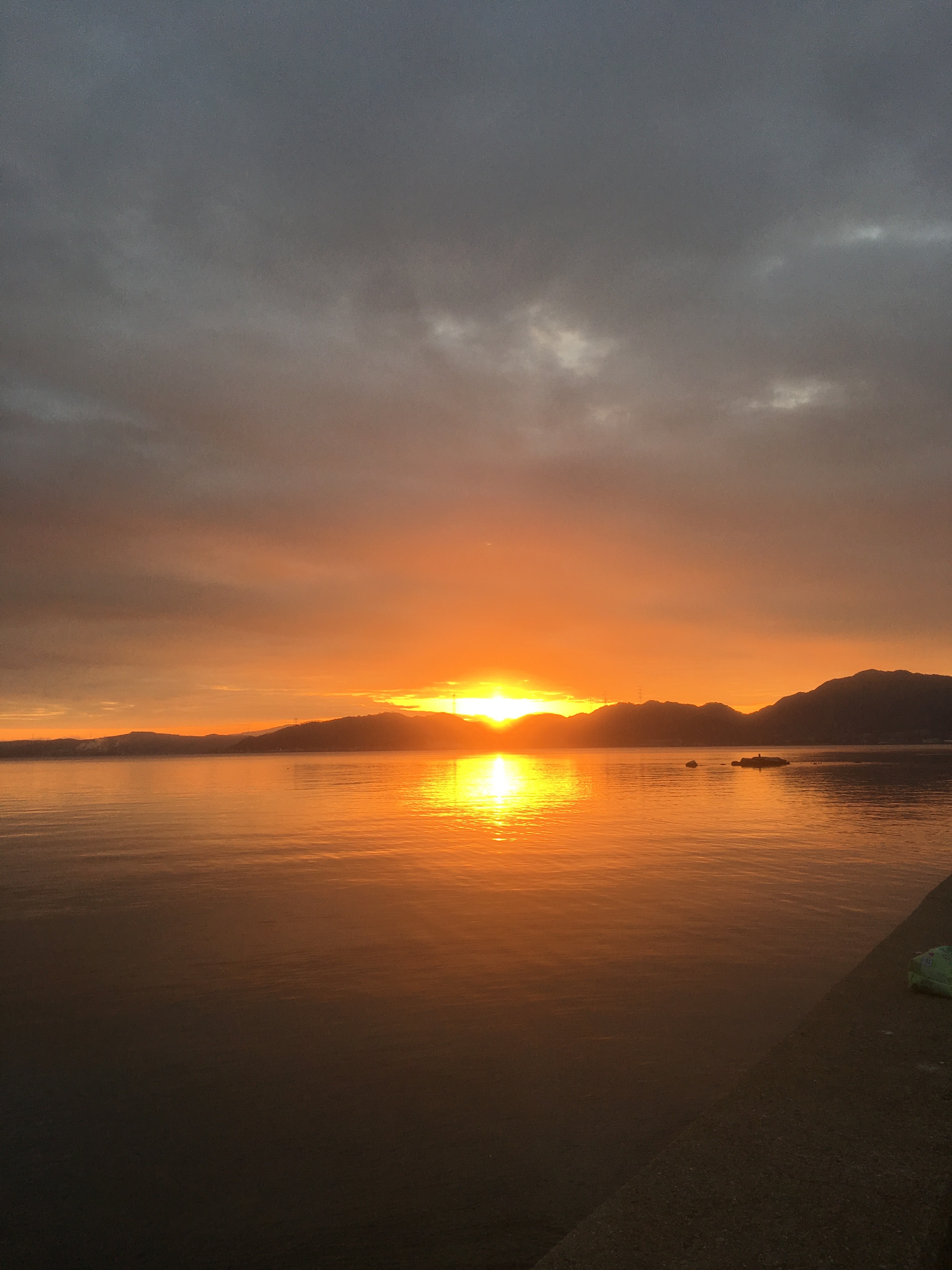 雲で大部分が隠れてしまっていましたが、雲の隙間から辛うじて初日の出を拝むことができました。
