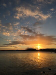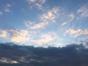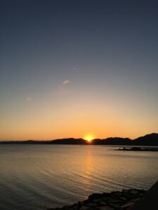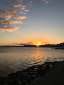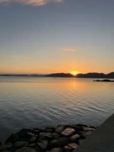 オレンジと青の透明感あるグラデーションカラーの空が非常に綺麗で印象的でした。