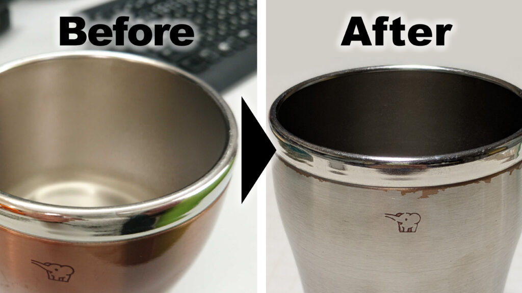 みるみる剥がれて、象印のタンブラーは、ブロンズからシルバーに昇格しました。