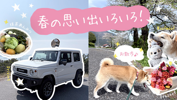 晴れた日には柴犬と満開の桜並木をのんびりお散歩。そのあとは甘味処に立ち寄って、新茶の風味豊かな抹茶あんみつを堪能しました。