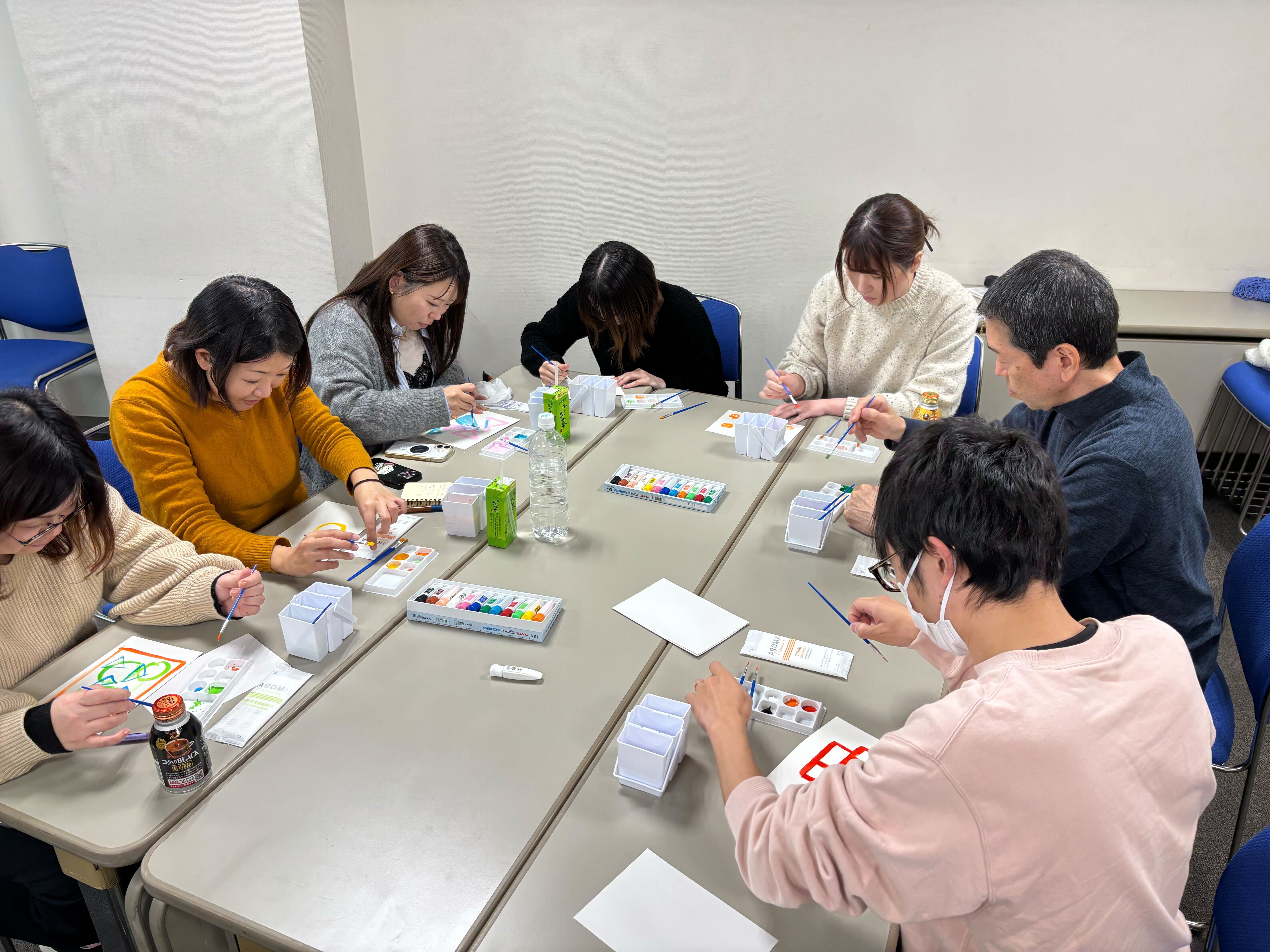 実際に絵の具を使って絵を描いたり、絵画を鑑賞したり…。普段の業務とは少し違う角度から感性を刺激する、とっても楽しくて学びの多い時間になりました。