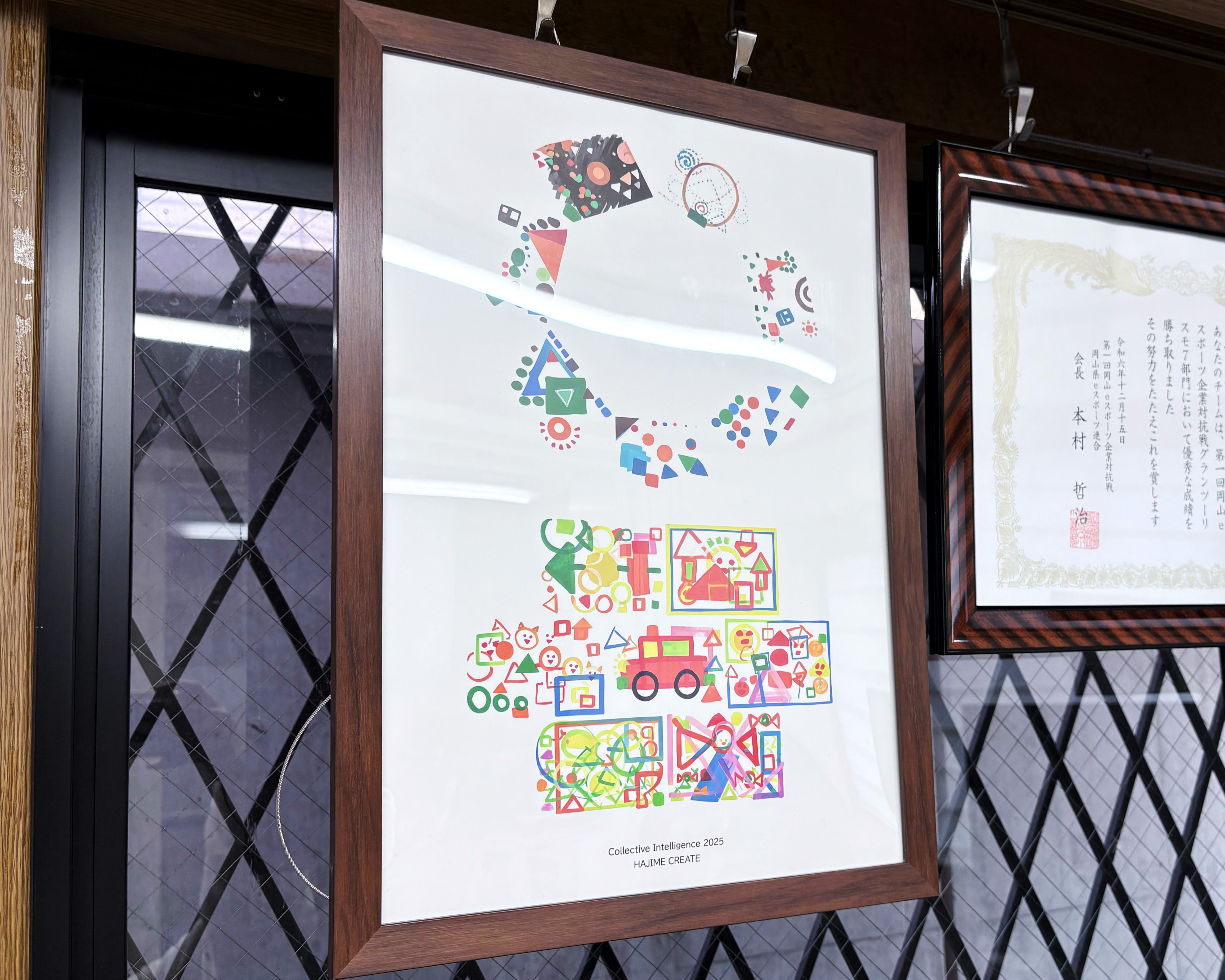 早速、社内の会議室に飾ったのですが、カラフルな色使いが部屋の中を一気に明るくしてくれたようです!